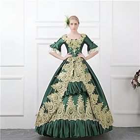 Rococó Vitoriano Renascentista Longo Vestidos Festa a Fantasia Baile de Máscara Tamanho Grande Normal Buffante Manga Alargamento Princesa Rendas Toile Vintage De Baile Decote em V-wire Fantasia