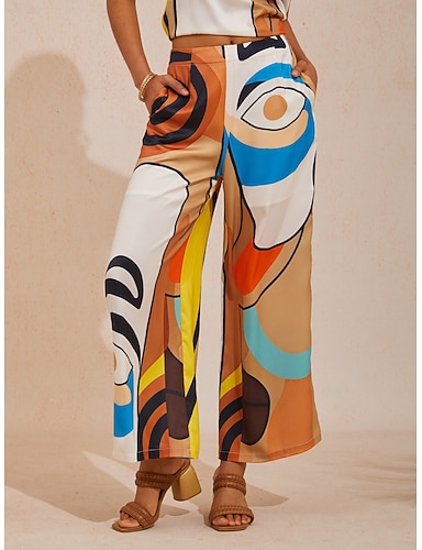 Mulheres Perna larga Calças Férias Moda à moda Mimolet Cintura Alta Gráfico Abstrato Geométrico Imprimir Respirável Sem Elasticidade Casual Diário Rua cáqui Verão Primavera Outono Inverno Ajuste Largo