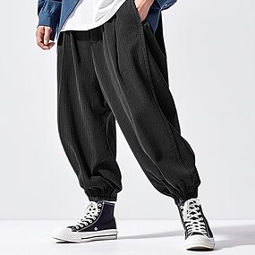 Homens 100% Algodão Calças Calças largas Calça casual Calças com lavagem ácida Com Cordão Cintura elástica Perna reta Tecido Confortável Respirável Comprimento total Diário Ao ar livre Férias Moda