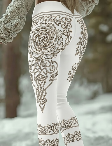 Mulheres Leggings Leggings aconchegantes Férias Vintage Estilo Étnico Comprimento total Cintura Alta Gráfico Rosa Estampado Conforto Confortável Com Stretch Casual Diário Férias Verde Escuro Cinza