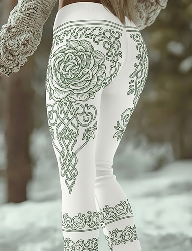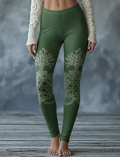 Mulheres Viking Leggings Leggings aconchegantes Férias Vintage Estilo Étnico Comprimento total Cintura Alta Gráfico Estampado Confortável Com Stretch Casual Diário Férias Verde Primavera Outono Fino