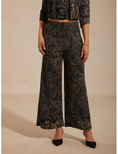 Mulheres Perna larga Moda Roupa de rua Comprimento total Natural Tecido Paetês Cintura elástica Confortável Exterior Festa Rua Adamascado Preto Marron Outono Normal