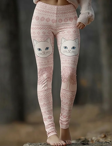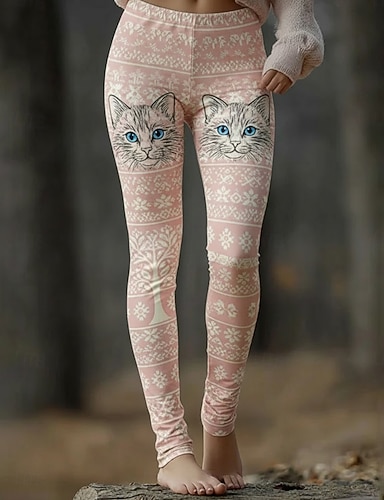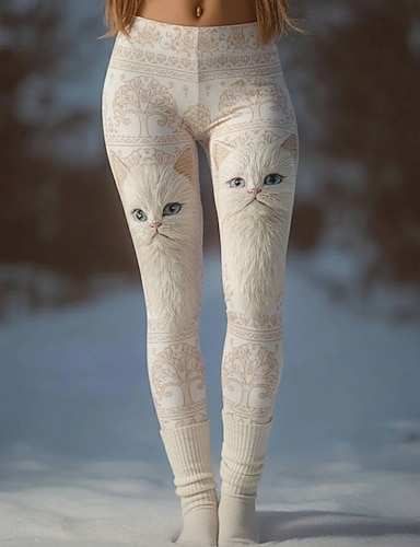 Mulheres Calças Leggings Leggings aconchegantes Férias Vintage Roupa de rua Comprimento total Natural Gráfico Animal Gato Cintura elástica Imprimir Confortável Exterior Elasticidade Alta Ao ar livre