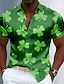 Camisa com Cor Gradiente de Trevo Masculina do Dia de São Patrício Camisa de Cetim Camisa de Dress Manga Curta Vintage Retrô Férias Verão Primavera Gola Caída Camisas Com Gola Impressão 3D Camisas