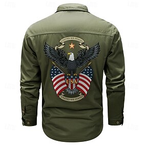 Homens Águia Bandeira dos EUA Camisas de trabalho camisa ocidental Camisa de carga Manga Longa Casual Desportos e Ar livre Para Noite Outono Inverno Aberto para a Lateral Imprimir Preto Verde Tropa