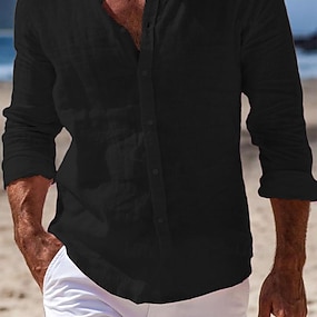 Homens Camisa Social Camisa de linho camisa de verão Roupa de Praia Tecido Férias Casual Preto Branco Azul cáqui Manga Longa Lapela Primavera Verão Roupa