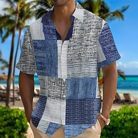 Homens Geométrica Bloco de cor Retalhos Camisa Social Camisa casual camisa de botão Manga Curta Moda Casual Férias Dia a Dia Feriado Verão Primavera Aberto para a Lateral Impressão 3D camisas de