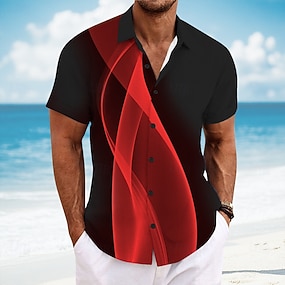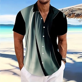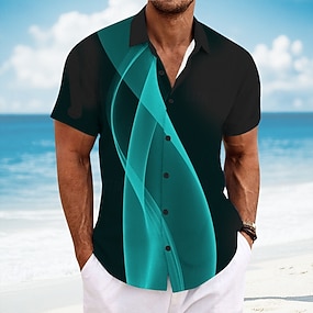 Homens Geométrica Gradiente Linha Camisa Social camisa de verão camisa de botão Manga Curta Moda Casual Ao ar livre Férias Dia a Dia Verão Primavera Aberto para a Lateral Impressão 3D camisas de