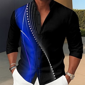 Homens Geométrica Gradiente Ondas Camisa Social Camisa de gola alta Manga Longa Moda Casual Dia a Dia Feriado Primavera Outono Colarinho Mandarim Faixa Impressão 3D Camisas de botões Azul Vermelho