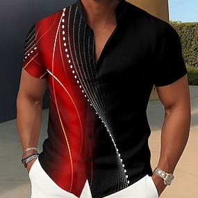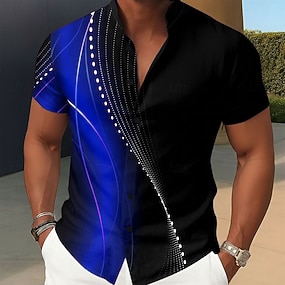 Homens Geométrica Cor gradiente Linha Camisa Social camisa de botão Camisa de gola alta Manga Curta Vintage retrô Férias Dia a Dia Roupa de Praia Verão Primavera Colarinho Mandarim Impressão 3D