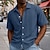 Homens Camisa Social Camisa de linho Camisa Guayabera camisa de verão Roupa de Praia Tecido Casual Diário Azul Branco Verde Cinzento Manga Curta Lapela Verão Primavera Verão Roupa Bloco de cor