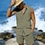 Homens Camisa de linho 2 Peças Conjunto de camisa E Calção Shorts de linho Shorts de praia Definir Tecido Diário Ao ar livre Praia Aberto para a Lateral Sem Manga Verão Moda Casual Confortável Roupa