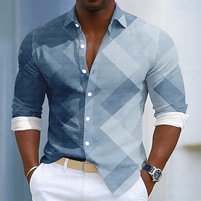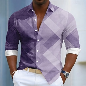 Homens Xadrez Blusa de cetim Saia camisa de botão Manga Longa Moda Casual Férias Traje de festa para noite Dia a Dia Verão Primavera Outono Camisas de colarinho Impressão 3D Dourado