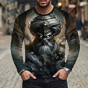 Camiseta masculina de esqueleto 3D camiseta de manga longa camiseta com estampa 3D camisa de gola redonda moda exagerada casual de rua daily verão primavera outono roupa