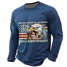4 de Julho de 2026 250º Dia da Memória Camiseta Masculina com Estampa 3D Decote Redondo Manga Longa Casual Dia a Dia