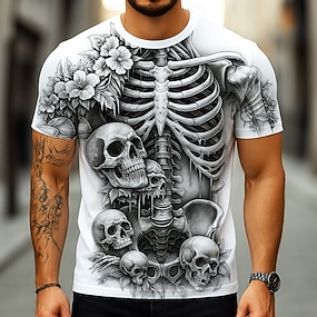 Homens Caveiras Camiseta Manga Curta Camiseta Impressão 3D Gola Redonda Camisa Moda Roupa Esportiva Rua Dark Party Preto Verão Primavera Roupa S M L XL XXL XXXL