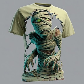 Homens 3D impressão Zumbis Saco Mummy Camiseta Manga Curta Camiseta Impressão 3D Gola Redonda Camisa Exagerado Designer Terror Bandagem Festa Rua Azul Roxo Verde Verão Primavera Todas as Estações