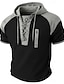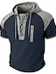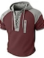 Homens Camisa Waffle Henley T-shirt Manga Curta Com Capuz Pescoço Laço Verão Primavera Todas as Estações Côr Sólida Moda Designer Casual Bloco de cor Casual Diário Ao ar livre Azul Claro Preto Vinho
