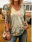 Mulheres Camiseta Imprimir Floral Gráfico Plantas Boêmia Vintage à moda Manga Curta Decote V Tops regulares Diário Azul Laranja Verde Verão Primavera