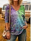 Mulheres Camiseta Imprimir Tintura Tie Dye Graffiti Boêmia Vintage Clássico Manga Curta Decote V Tops longos Diário Arco-íris Verão Primavera