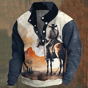 Homens Gráfico Bloco de cor Cowboy camisolas Moletom Manga Longa Moletom Colarinho Chinês Diário Casual Vintage retrô Impressão 3D Férias Esportes Feriado Imprimir Primavera & Outono