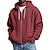 Homens Moletom Full Zip Hoodie Moletom de lã Branco + vermelho Red + Cinza Branco + preto Branco + cinza Preto+Cinza Com Capuz Poá Tecido Zíper Bloco de cor Desportos e Ar livre Casual Diário Roupa