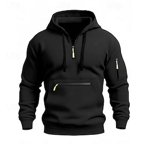 Homens Moletom Moletons com zíper Moletom Tático Preto Azul Marinha Camelo Cinza Claro Cinzento Escuro Com Capuz Tecido Bolsos Half Zip Bolso frontal Diário Feriado Para Noite Poliéster Roupa de rua