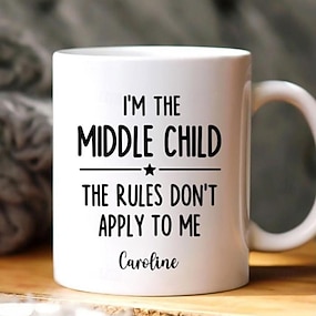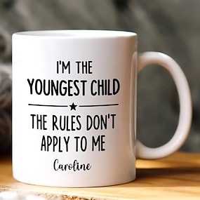 Caneca personalizada para presente de criança mais velha, caneca de cerâmica com nome personalizado, "Quem faz as regras?", 325 ml/445 ml, branca, para aniversário, Natal, família, humor. Canecas de