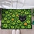 Tapete de porta para o Dia de São Patrício com estampa de trevo verde e um gatinho preto fofo espiando, perfeito para decorar a entrada da sua casa nesta data festiva.