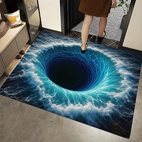 Tapete de entrada com vórtice de buraco negro, ilusão visual 3D, impressão plana 2D com design de ondas do oceano, durável e antiderrapante, perfeito para entradas.