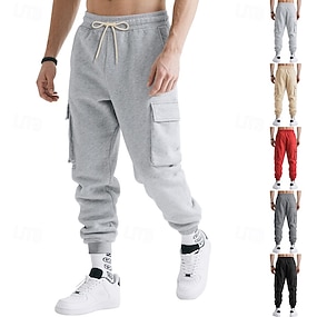 Homens Calças Esportivas Corredor Calças Calça de moletom cargo Calça de moletom de perna reta Com Cordão Cintura elástica Bolso multi Tecido Conforto Quente Comprimento total Ao ar livre Casual