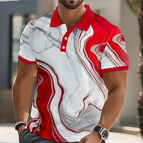 Homens Mármore Camisas Polo Manga Curta Camisas polo Camisas de colarinho Casual Rua Roupa Esportiva Roupa Diária Impressão 3D Botões Malha Respirável Primavera Verão Azul Verde