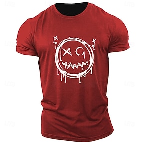 Camiseta Gráfica para Homens com Rosto de Olho-X Afiado Estreado Manga Curta Solta com Decote Redondo