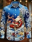 Natal Homens Papai Noel Floco de Neve Trenó Camisa Social camisa de botão Manga Longa Engraçado Presentes de Natal Feriado Primavera Outono Aberto para a Lateral Impressão 3D camisas de colarinho
