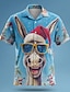 Natal Homens Animal Mula / Burro natal engraçado Camisa Social Camisa cubana Manga Curta Engraçado Feriado Streetwear Primavera Outono Colarinho Mandarim Impressão 3D Camisas de botões Azul Claro