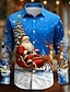 Natal Homens Papai Noel Árvore de Natal presente de Natal Camisa Social camisa de botão Manga Longa Engraçado Ao ar livre Feriado Primavera Outono Aberto para a Lateral Impressão 3D camisas de
