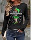 Natal Mulheres Camiseta Gráfico Natal Vintage Moda à moda Manga Longa Gola Redonda Decote Redondo Tops regulares Diário Final de semana Imprimir Preto Vermelho Verde Verão Primavera Outono Inverno