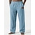Homens Calças de linho Calças Calça verão Calças largas Bolsos Cintura elástica Perna reta Côr Sólida Tecido Conforto Confortável Comprimento total Casual Diário Feriado Férias Moda Ajuste Largo Azul