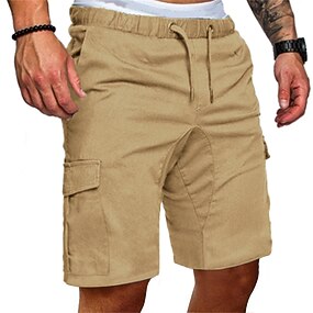 Homens Bermuda Cargo Calção Shorts de verão Com Cordão Cintura elástica Bolso multi Tecido Conforto Vestível Curto Ao ar livre Esporte Diário Moda Casual Preto Cáqui
