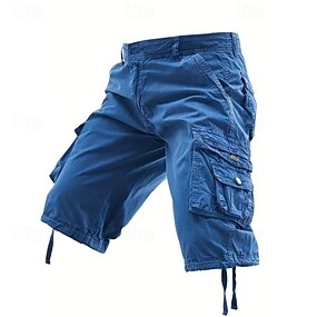 Homens Shorts táticos Bermuda Cargo Calção Botão Bolso multi Tecido Vestível Curto Ao ar livre Diário Para Noite Moda Clássico Preto Azul