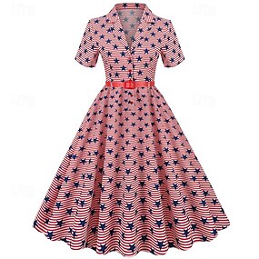 250º Aniversário EUA Anos 50 Retro Vintage Meio-dia Vestidos Vestido swing Vestido Flare Mangas curtas Linha A Fantasia Mulheres 4 de julho Dia da Independência Adulto Vestido Primavera Verão