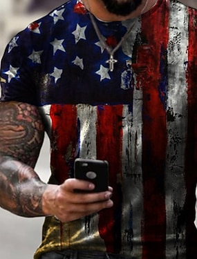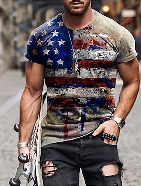 4 de julho de 2026 Dia Memorial 250º Moda Masculina Patriota Desgastada Gráfico 3D Impressão Bandeira Americana Bandeira Nacional Veterano Camiseta de Manga Curta Gola Careca