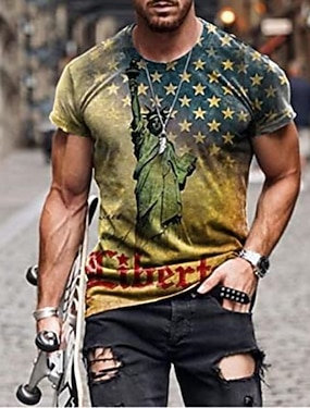 4 de Julho de 2026 250º Dia da Memória Camiseta Masculina Patriótico Patriota 3D Impressão Bandeira Americana Veterano Gola Redonda Manga Curta Rua