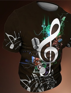 Homens Guitarra Notas musicais Camisa Social Camisa havaiana camisa de botão Manga Curta Tropical Moda Havaiana Rua Casual Havaiana Verão Primavera Aberto para a Lateral Imprimir Botão para baixo