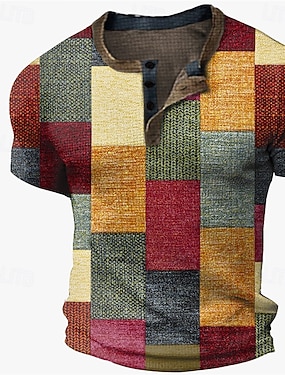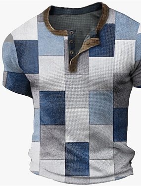 Homens Gráfico Bloco de cor Xadrez Camisa Waffle Henley Manga Curta Impressão 3D Moda Designer Básico Ao ar livre Rua Diário Verão Azul Amarelo Café Cinzento Henley Camiseta Henley