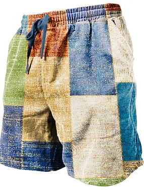 Homens Gráfico Xadrez Bloco de cor Shorts de moletom Shorts de praia Shorts Terry Cintura Média Casual Roupa Esportiva Diário Feriado Streetwear Com Cordão Cintura elástica Impressão 3D Designer Roupa