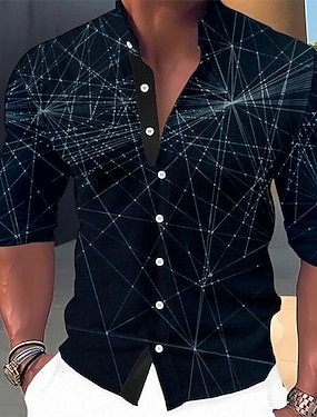 Homens 3D impressão Estampa Geométrica Camisa Social camisa de botão Manga Longa Moda Roupa de rua Designer Casual Diário Ao ar livre Verão Primavera Outono Colarinho Chinês Imprimir Azul Branco
