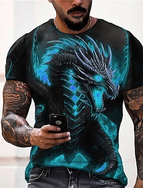 Homens Gráfico Motocicletas Camiseta camiseta angustiada Manga Curta Camiseta Impressão 3D Gola Redonda Camisa Vintage Moda Designer Ao ar livre Diário Esportes Azul Marron Verde Primavera Verão Roupa