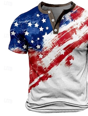 Homens Camiseta Camisa Henley Camisetas Gráfico Leme Henley Azul Roxo Vermelho Marron Cinzento Impressão 3D Tamanho Grande Ao ar livre Diário Manga Curta Botão para baixo Imprimir Roupa Básico