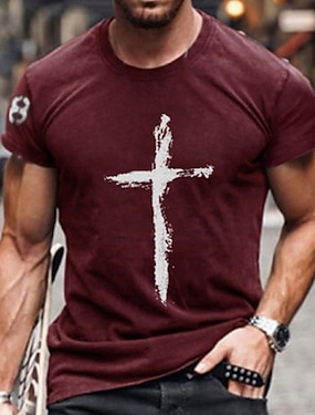 Camisa Cruzados Masculina Gráfica Color Block T Shirt Tee T Shirts Cristãs de Manga Curta T shirt Impressão 3D Camisa de Gola Redonda Designer Leve Confortável Casual Diário Esportes Preto Vermelho